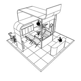 Small and large format exhibitions, 3d visuals, stand design and panel artwork.